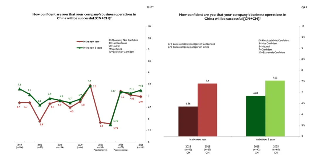 在最新发布的《2025年瑞士企业在华营商调查报告》中,来自102家瑞士企业的决策者表示,尽管短期预期仍较为谨慎,但对在华开展业务持稳定的长期信心。该调查由瑞士中心和汉易商务咨询在圣加仑大学的学术领导下进行,并得到瑞士驻华大使馆、瑞士中国商会、瑞中经济协会、瑞士科技文化中心、the Swiss Chinese Enterprises Association、瑞士贸易与投资署和Economiesuisse的合作支持。该调查被认为可代表在华约600家瑞士企业,可在圣加仑大学官网下载。