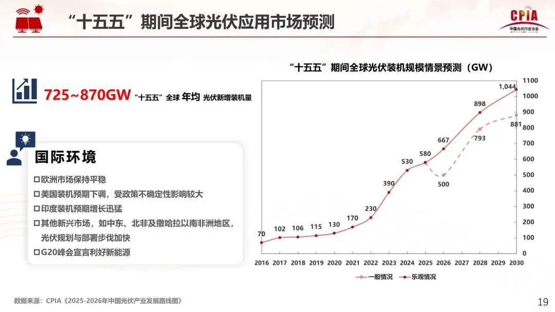 预计“十五五”中国年均光伏新增装机量238GW-287GW,主要增长因素为:终端用能电气化水平提升,社会增量用能以绿色化为主导,社会存量用能绿色低碳化转型,“光伏治沙”场景挖掘生态环境应用价值,其他新兴光伏应用场景带来增量需求,具体报告如下: