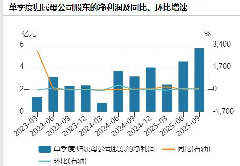2025 年 Q3 单季归母净利润:4.62 亿元(+225%),创历史新高