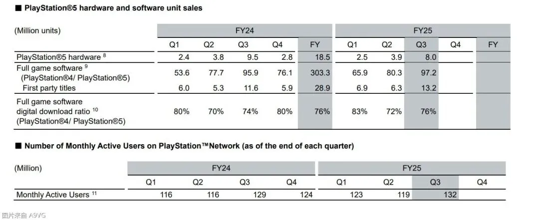 PSN月活跃用户数达1.32亿,上一财年同期该数字为1.29亿,同比增长300万人