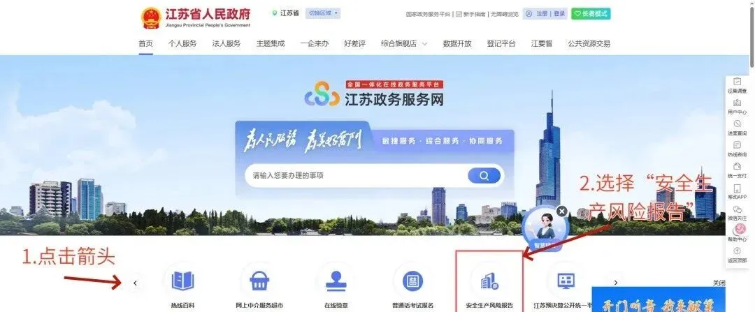 (1).2021年 - 2025年已经在江苏省政务网获取法人账号和密码的企业,通过江苏政务服务网中的安全风险报告模块或通过网址https://aqfxbg.jszwfw.gov.cn:48000/risk-report/#/login 进入登录页面。