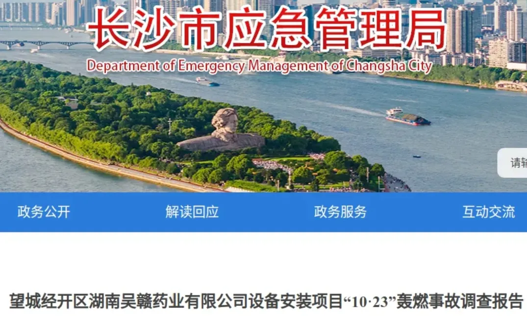 2月3日,湖南省长沙市应急管理局官网公布《望城经开区湖南吴赣药业有限公司设备安装项目“10·23”轰燃事故调查报告》。