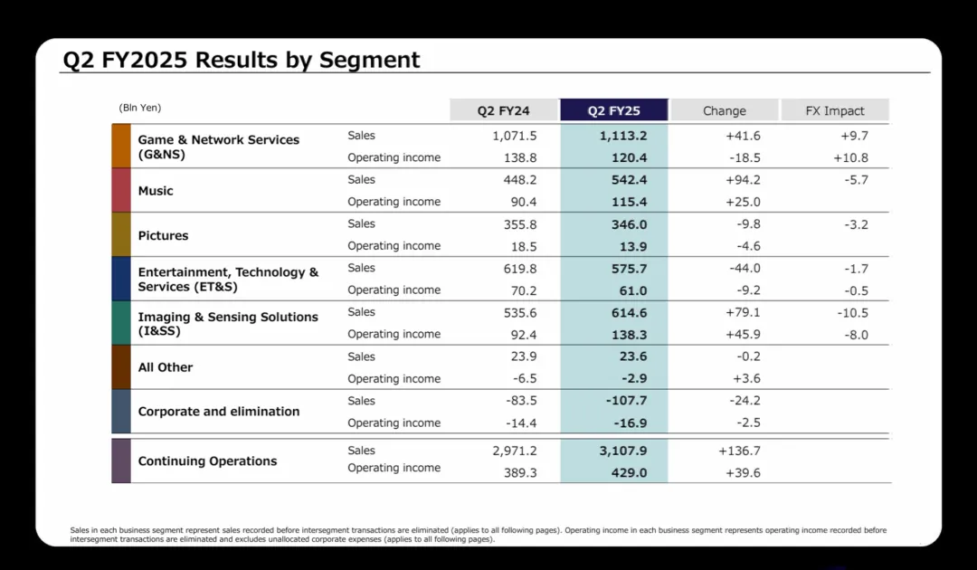 索尼集团发布2025财年第二季度财报