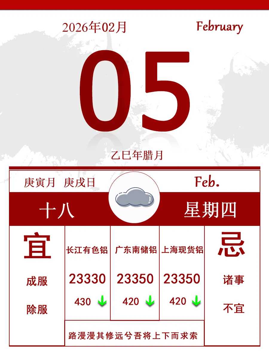 关注每日铝土矿、氧化铝、电解铝(铝锭)价格用户请到找铝抖音号查看当天价格,谢谢!