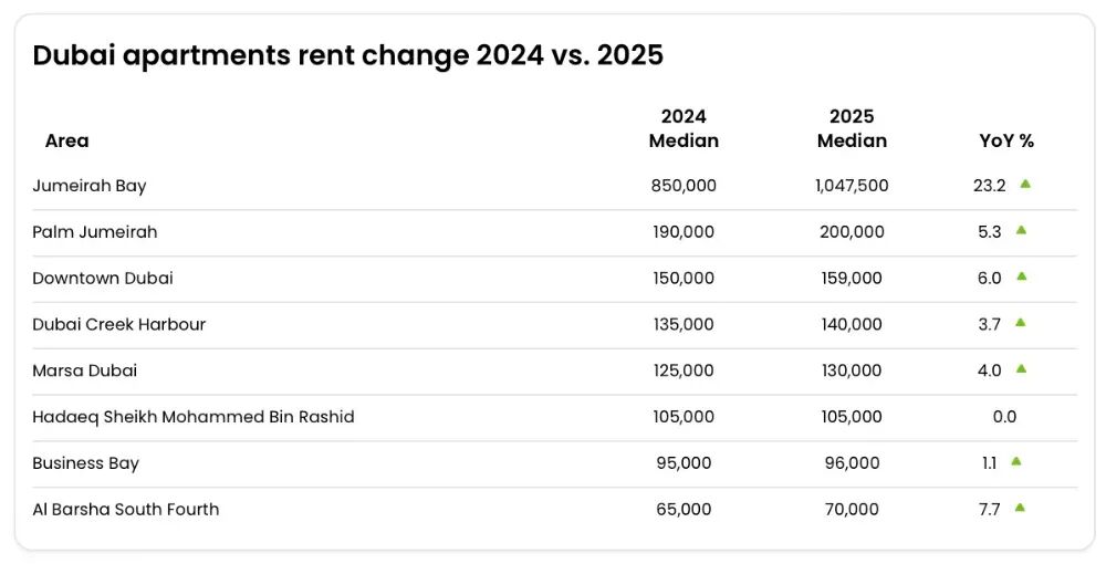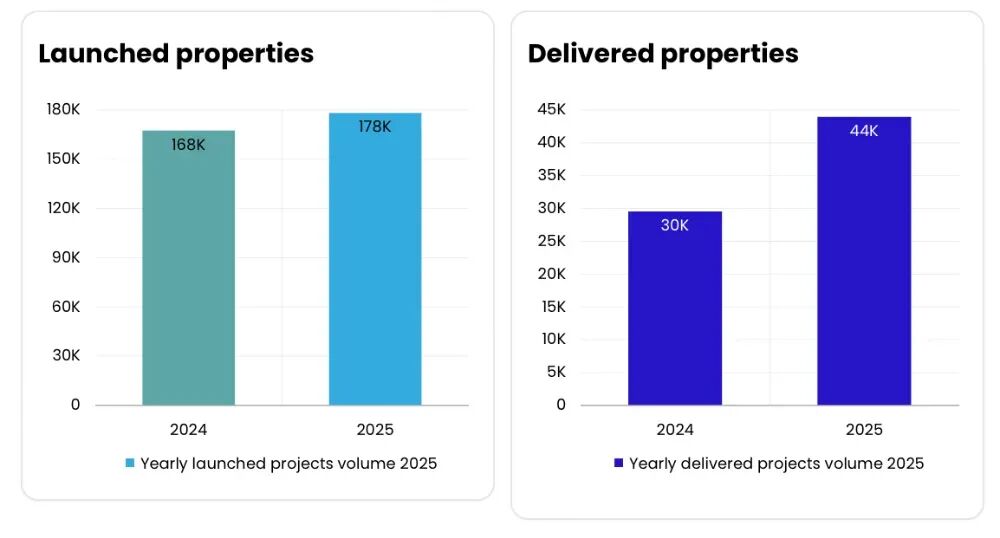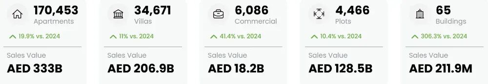 2025年迪拜房地产市场创造了新的历史纪录,并在强劲增长中展现出从“高速扩张”向“成熟、可持续增长”转型的清晰迹象,小德不禁发问:迪拜房地产市场的顶点究竟在哪里?市场并未进入拐点,而是从“价格驱动”转变为“居住驱动”三项主要销售数据创下迪拜有史以来最高年度成交记录:2025年迪拜总计交易215741笔,同比去年增长18.7%每平方英尺平均单价1660迪拉姆,同比增长8.3%迪拜房地产市场延续了多年增长趋势,而非单一时段的异常现象,由此可见市场正处于高速发展的黄金周期。2025年全年表现优异,打破了“迪拜房产已达峰值”“即将进入房价拐点”的泡沫言论:其中,2025年公寓交易170453套,总计成交额3330亿迪拉姆,同比去年涨幅19.9%别墅交易34671套,总计交易2069亿迪拉姆,同比去年涨幅11%地皮交易4466总,总计交易额1285亿迪拉姆,同比去年涨幅10.4%1·人口增涨:2025年迪拜常住人口已突破400万+,自2011年的200万人口,到突破400万,迪拜仅用15年就实现了人口翻倍。且新增人口主要来自世界各地的精英人才,具备高消费力、追求品质的主要特点。2·高移民潮:2025年全球百万富翁移民潮达到创纪录的14.2万人,阿联酋是吸引百万富翁迁入的首选目的地,迪拜因此受益。3·持续需求:对住宅资产存在持续需求,并非单一依靠顶级豪宅的高价,呈现出多区域全面开花的良性结果。4·可承担的付款:迪拜房产预售阶段灵活的分期付款结构,适用于不同经济情况的家庭选择。AI Barshaa South Fourth:交易18690套,涨幅6.6%;总交易额243亿迪拉姆,涨幅18.5%Business Bay:交易13843套,涨幅15.1%;总交易额399亿迪拉姆,涨幅29.1%Wadi AI Safa 5:交易11632套,涨幅32.9%;总交易额219亿迪拉姆,涨幅12.2%Madinat AI Mataar:交易9830套,涨幅26.4%;总交易额242亿迪拉姆,涨幅21.4%Jabal Ali First:交易8330套,涨幅24.2%;总交易额183亿迪拉姆,涨幅56.9%Business Bay:交易13843套,涨幅15.1%;总交易额399亿迪拉姆,涨幅29.1%Marsa Dubai:交易7550套,下降4.5%;总交易额295亿迪拉姆,下降3.5%AI Yelayiss 1:交易6276套,涨幅高达687.5;总交易额245亿迪拉姆,涨幅197.3%AI Barshaa South Fourth:交易18690套,涨幅6.6%;总交易额243亿迪拉姆,涨幅18.5%Madinat AI Mataar:交易9830套,涨幅26.4%;总交易额242亿迪拉姆,涨幅21.4%2025年迪拜期房市场公寓、别墅、商业的平均单价相较于去年均有所提升:公寓每平方英尺平均单价1800迪拉姆,同比去年增涨4.7%别墅平均单价达到1530迪拉姆/平方英尺,同比去年涨幅10%而商业平均单价2140迪拉姆/平方英尺,同比去年涨幅6.8%公寓每平方英尺平均单价1510迪拉姆,同比去年增涨6.8%别墅平均单价达到1480迪拉姆/平方英尺,同比去年涨幅17.8%而商业平均单价1550迪拉姆/平方英尺,同比去年涨幅20.3%根据迪拜房地产历年每平方英尺平均单价看出:自2020年平均单价918迪拉姆/平方英尺上升至1657迪拉姆,同比去年上涨8.3%,相比2014年涨幅63.5%,达到近年平均单价的最高峰值。2025年迪拜房地产市场呈现多元化竞争格局,Binghatti以17061笔交易问鼎年度销量冠军,展现出黑马开发商的增长潜力。同时,Emaar与Damac仍凭借强劲的市场份额与稳定的销售表现,分列二三位。Sobha、Danube等知名开发商也文烈榜单前十,足以反映百花放的良性竞争格局。根据2025年的市场数据,迪拜房地产市场呈现出“多点开花”的繁荣局面,多个细分领域和不同区域都表现出强劲的增长动能,也印证了市场的成熟度在提升,不再依靠顶级豪宅,而是房产选择更多元化,投资者的策略正从“普涨”转向更关注核心地段、稀缺资产和高质量开发项目。2025年租房需求最旺盛的是国际城,也是华人登陆迪拜的第一站,总计签约31516套,其次JVC签约数量是31194套,Jabal Ali First租赁签约29371套,商务港签约25427套,迪拜码头签约21441套。再来看2025年公寓市场租金,Jumeirah Bay年租金104.75万迪拉姆,同比2024年上涨23.2%;其次如Palm Jumeirah,Downtown Dubai,Dubai Creek Harbour,Marsa Dubai租赁价格均有所上升,展现出稳定的市场增涨。相较于迪拜公寓市场租金的全线上涨,别墅市场前2位Jumeirah Bay和Palm Jumeirah租金数据均有下滑,分别下滑:9.4%,1.7%;但分列3-5位的Marsa Dubai,Business Bay租金有所增加,其中Dubai Creek Harbour租金涨幅高达37.6%。2025年迪拜房地产市场共启动17.8万个新项目,同比去年增涨1万个新项目,足以证明市场呈现动态发展趋势;再看交付项目端口,2025年累计交付4.4万个项目,同比去年提升交付数量1.4万个,但仍不能满足源源不断的居住需求,也佐证了迪拜市场的火热。2025年破历史记录的迪拜房地产市场,共有9728家房产中介机构,同比去年涨幅39.7%,共计32317个房产代理人,同比去年增涨34.5%。在服务品质良莠不齐且高速发展的房产市场中,如何选择一家靠谱的中介机构非常重要。对于海外买家来说,这关系到买房效率、购房体验、房源品质以及后续考虑出租等一系列切身利益。一、迪拜2025年市场报告,史上“最长增涨牛市周期”,创下年度有史以来最高年度成交记录德西亚Desea与迪拜各大主流开发商均建立了深度合作关系,拥有第一手房源讯息;二、对于海外买家来说,德西亚Desea保障公正、公平、公开的购房原则,秉承诚信、专业的服务宗旨;三、德西亚Desea并非一个只负责前期销售的房产中介机构,而是从抢房、维护、再到后期运营托管的一站式服务管家。无论您是追求高端奢华,还是高性价比的精品项目,欢迎与德西亚DESEA联系,在公众号后台留言【迪拜2025年房地产市场报告