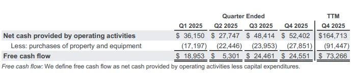 #Q4自由现金流245.51亿,2025全年是732.66亿美金,未来年化肯定超过1000亿美金了