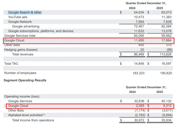 包含与 Anthropic 的 500–800 亿美元 TPU 协议 首次确认来自 OpenAI、Meta 等竞争对手的算力订单 - 首次实现全年 GAAP 盈利