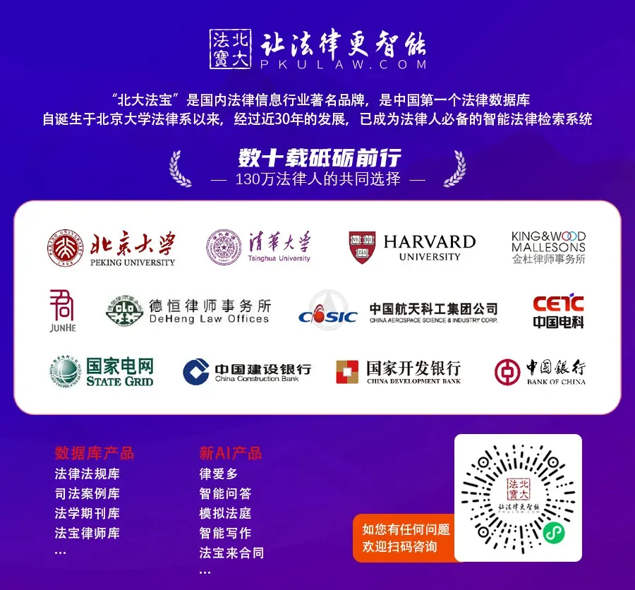 本文声明 | 本文章仅限学习交流使用,如遇侵权,我们会及时删除。本文章不代表北大法宝和北京北大英华科技有限公司的法律意见或对相关法规/案件/事件等的解读。