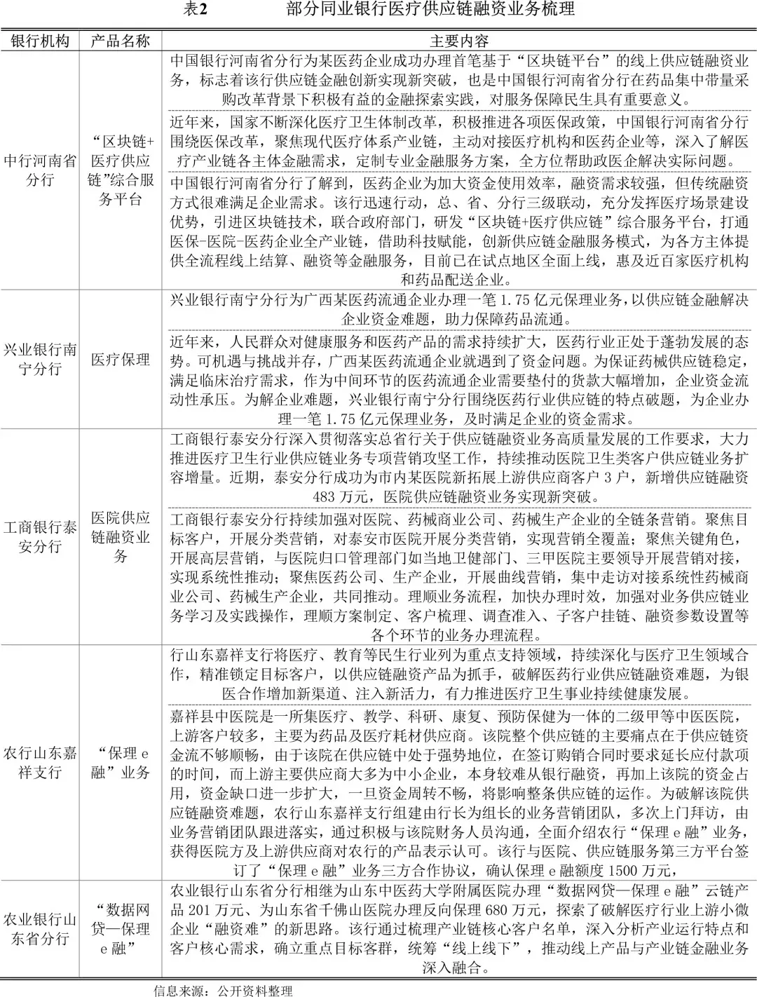 同业对比:部分同业银行医疗供应链融资业务梳理