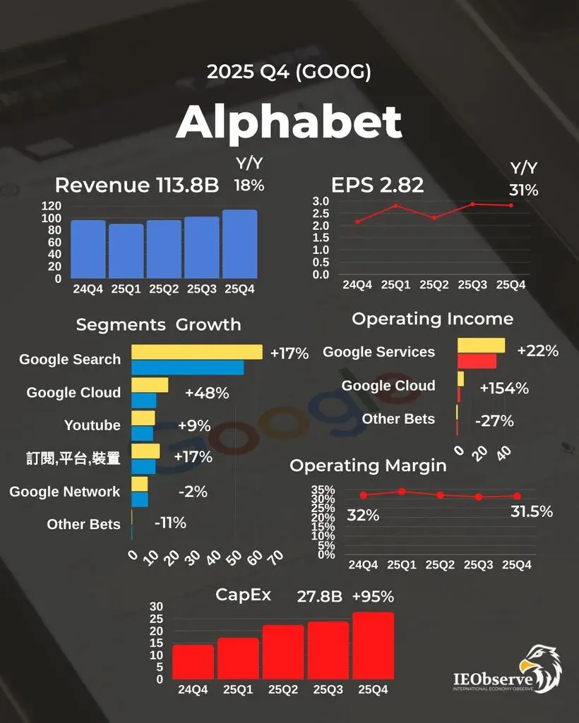 如果说2024年市场还在争论AI是不是“郁金香泡沫”,那么Alphabet(谷歌母公司)刚刚发布的2025年Q4财报,就是一份最有力的反击宣言。