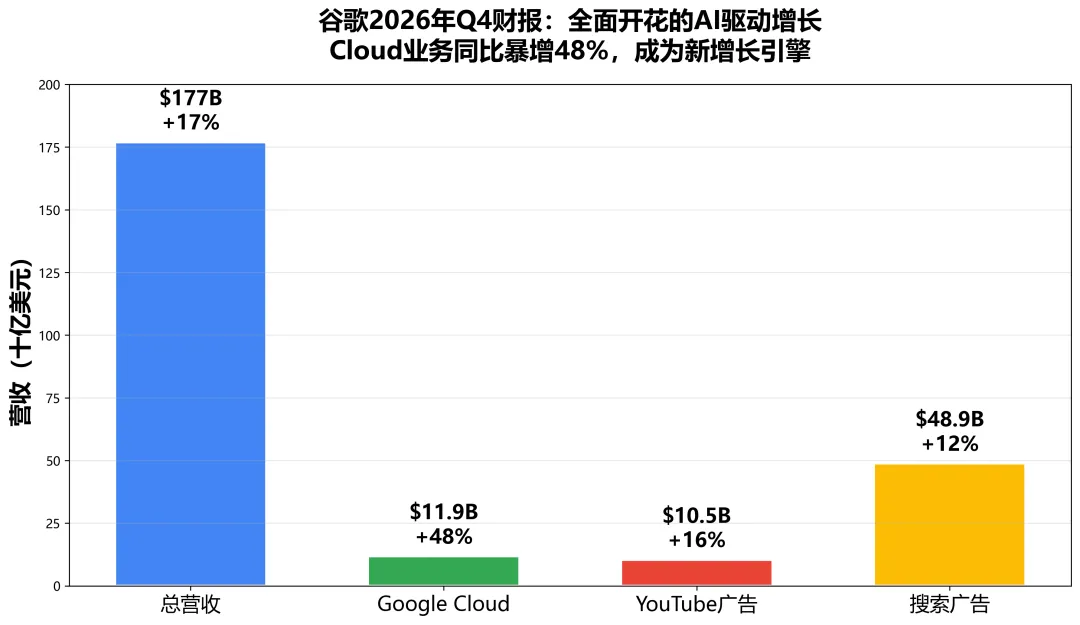 2026年2月4日,当谷歌母公司Alphabet发布2025年Q4财报时,华尔街的反应出人意料地平淡。股价仅上涨1%,远低于市场预期。但如果你仔细研读这份财报,会发现一个惊人的事实:谷歌正在以一种前所未有的方式,将AI时代的"通行证"牢牢握在手中。- Google Cloud营收119亿美元,同比暴增48%