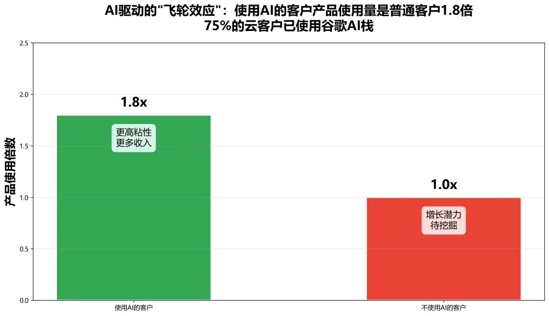 Google Cloud的表现,是本次财报最大的亮点。更令人震撼的是:使用AI的客户,产品使用量是不使用AI客户的1.8倍。这揭示了一个关键逻辑:AI不仅是产品功能,更是"客户粘性"的放大器。3. 更强AI能力 → 吸引更多客户,提高使用频率4. 更高使用频率 → 带来更多收入,支撑更大投入这是一个正向循环。而谷歌,已经率先启动了这个飞轮。2.2 利润率飙升的"降本密码"