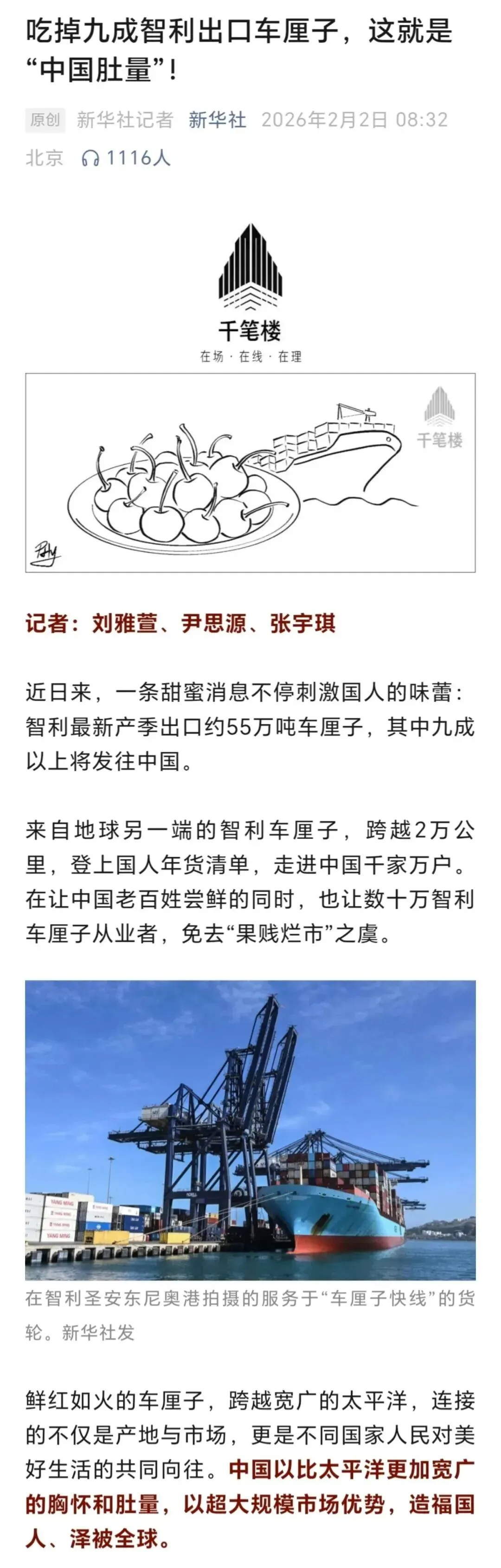 小小车厘子跨越两万公里抵达中国餐桌,正是“一带一路”倡议最鲜活生动的实践。在圣安东尼奥集装箱码头,我们创新应用复杂地质区域钢管桩陆上沉桩施工技术,成功凿穿横穿整个码头施工区域的百年防波堤,接连破解多项技术难题,顺利完成码头扩建工程,进一步完善了港口物流体系。如今,以智利圣安东尼奥港为代表的一个个港口码头,如明珠般串联成线,共同构筑起“一带一路”高效畅通的物流网络。作为项目建设者,我亲身见证了“一带一路”为沿线国家和人民带来的实实在在的福祉,心中满是骄傲与自豪。