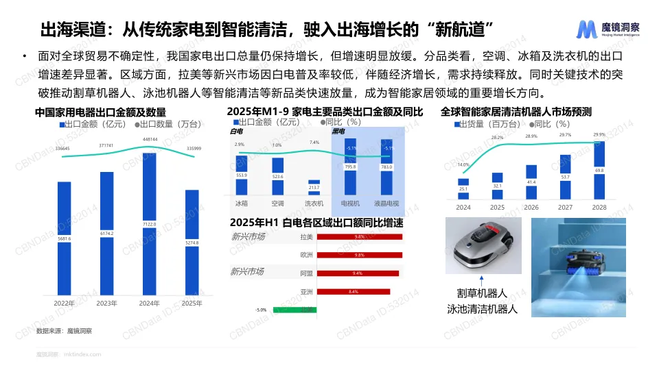 - 大家电:空调高增长,冰洗份额稳固;中央空调、烟灶套装增速亮眼。