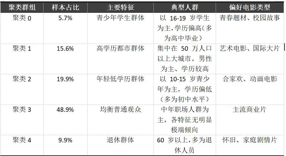 这类群体划分与偏好分析,可为电影行业提供直接参考: