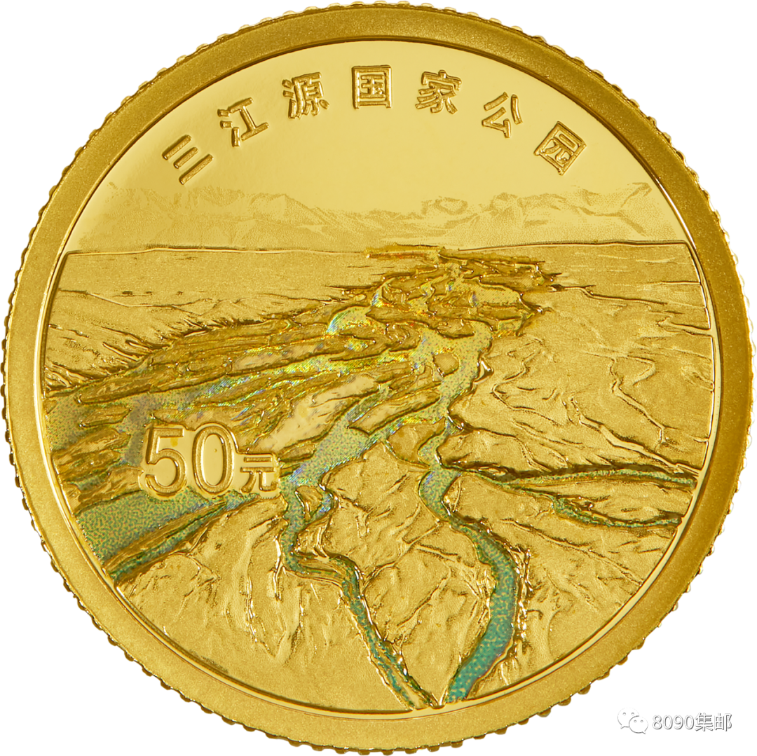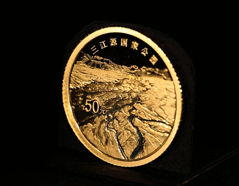 3克金质纪念币设计主要展现了三江源国家公园代表性自然景观——形似发辫的河流地貌,远景山脉交错,雪峰耸立。整体画面体现了三江源国家公园雪山连绵、河流纵横、生生不息的美好自然生态。