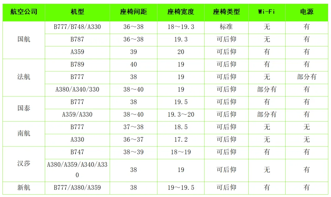 数据来源:SeatGuru网站(具体配置可能因飞机编号、执飞航线等因素存在差异)。