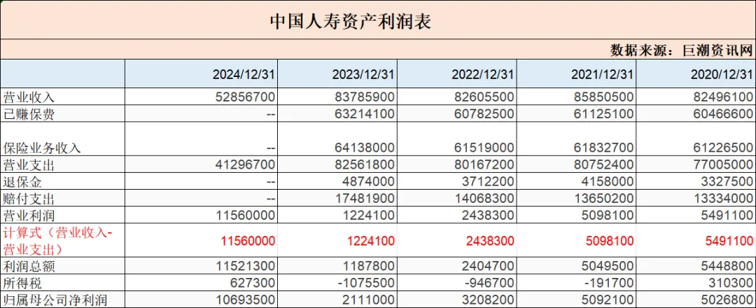 做个小结:2024年度公司总资产高达6.7万亿,总负债6.2万亿,净资产5096亿,这样规模的保险企业在2024年创造营收额为5285亿亿/年,营业支出4129亿/年,净利润1089亿/年。