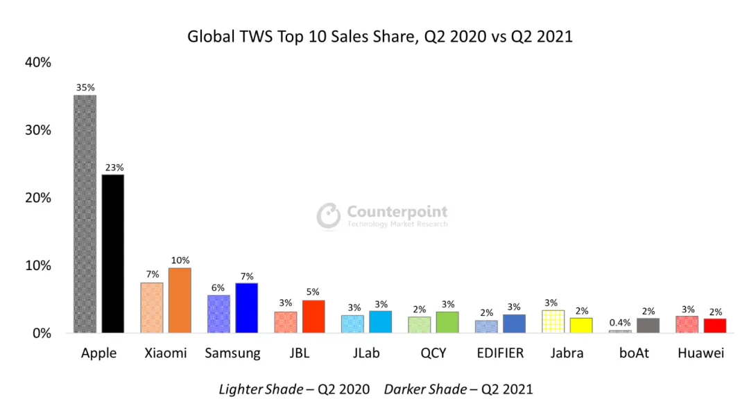 资讯丨第二季度 TWS 耳机市场报告出炉,苹果第一、小米第二