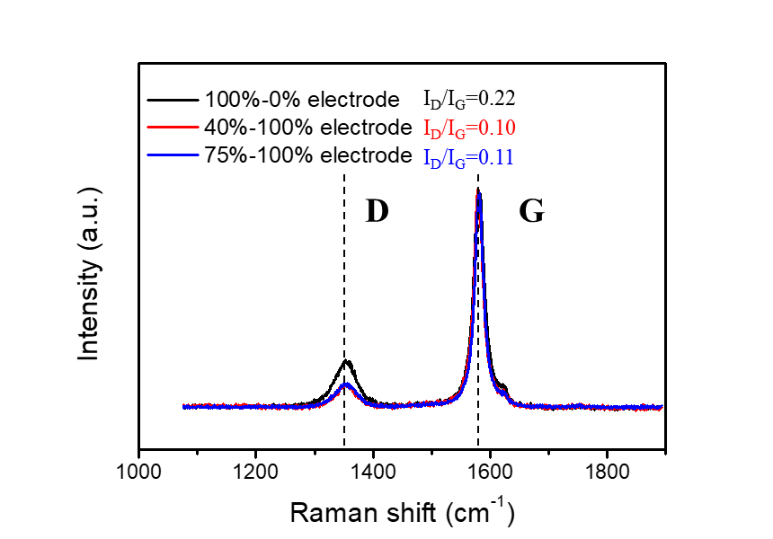图3. 负极极片经三种不同方式辊压后的拉曼表征结果。