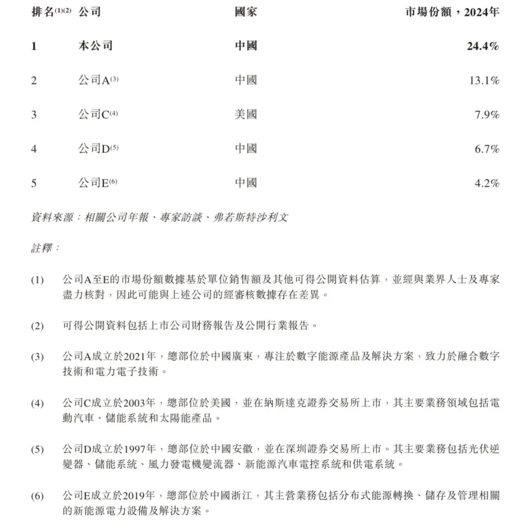 全球户用太阳能光伏逆变器市场竞争格局较为分散。以收入计,2024年前五大企业合计占据30.6%的市场份额。