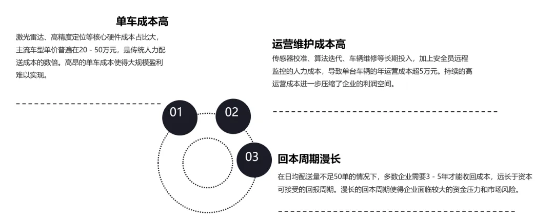 无人配送车的核心场景集中在末端配送,包括商超补货、生鲜配送、快递揽派等,同时向全链路物流延伸。商业模式主要分为三类:一是企业自主运营,如美团、京东在园区内搭建自有配送车队;二是 “硬件 + 订阅” 模式,企业向客户提供车辆与运维服务,按里程或订单收费;三是政企合作,在城市道路、园区等场景开展试点。经济效益方面,随着单车成本下降与运营效率提升,单票配送成本已逐步接近人力配送,部分场景实现正向盈利。