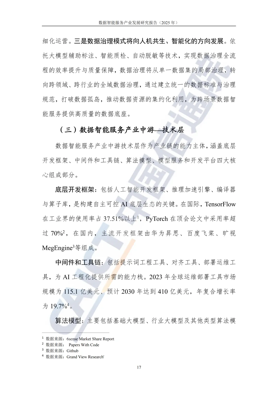 传统大数据产业的核心是提取已有信息辅助决策,不会创造新信息,而数据智能服务更侧重数据全生命周期的价值挖掘,核心是实现数据价值释放与智能决策,还能创造新信息。人工智能产业依赖算力、算法与数据的协同发力,核心落在算法与算力上,数据智能服务则以“数据驱动”为核心,更看重数据全流程治理和价值变现,聚焦把原始数据转化为可用的“数据资产”,适配大模型训练所需的高质量数据需求。