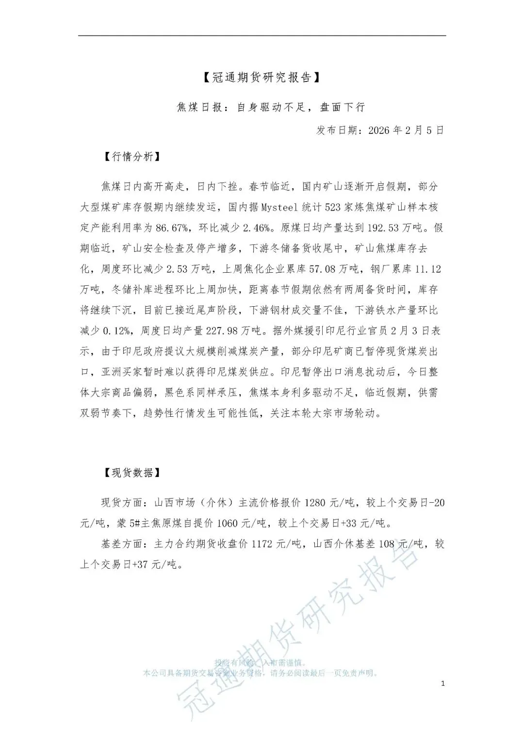 冠通期货研究报告-焦煤日评:自身驱动不足,盘面下行