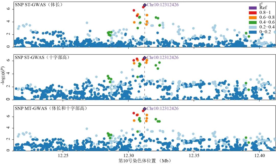 Chr10:12312426±100 kb区域的SNP GWAS局部关联图