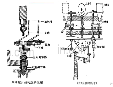 压片用到的设备按照结构可分为单冲压片机或旋转压片机;按照片层又可分为双层或多层压片机及有芯压片机;按照压缩次数可分为一次压制压片机和多次压制压片机、不同压片机各具不同使用优点,例如多次压制压片机受压时间长、密度均匀可减少裂片风险;多层压片机可以减少配伍变化,可制成缓控释制剂;高速旋转压片机产量大、自动调节片重、剔除不合格片剂、可自动取样计数等[1]。当然,具体选用哪种压片机还是要根据现有的实验室条件和仪器性能做出合理选择判断。