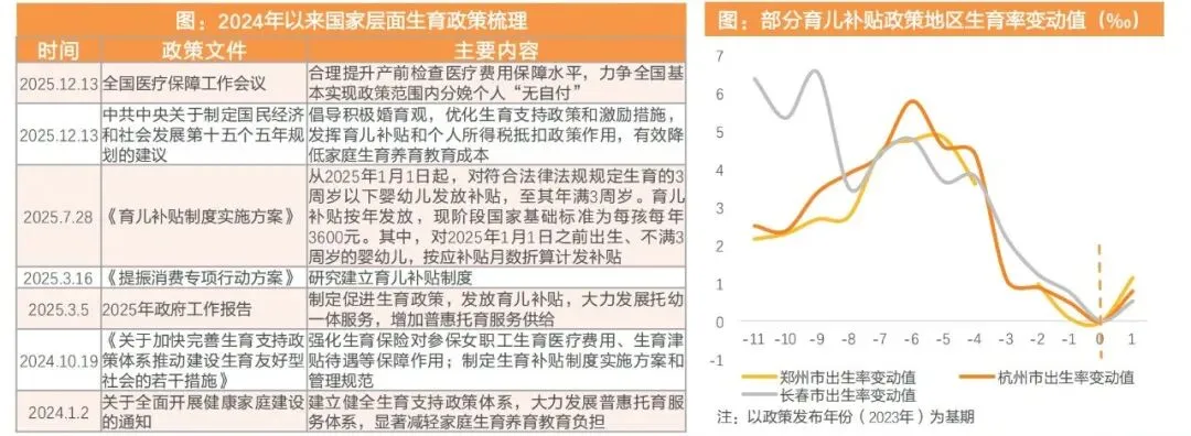 中低收入家庭对该类经济补贴敏感度更强,政策落地效果也更为显著。从过往生育补贴政策来看,山东省济南市等地自发放育儿补贴以来有较明显的出生人口增长;郑州市自 2023 年 9 月全面启动实施对一孩、二孩和三孩育儿补贴后,2024 年人口出生率为 8.75‰,同比增1.16‰;杭州市23年7月起多孩补贴、长春市 23 年 10 月三孩生育补贴下,皆在政策落地次年出生率同比增长 0.8‰、0.52‰。此外,部分城市虽出生人口数没有明显增长,但人口迁移流入情况显著优于周边地区和全省平均水平。