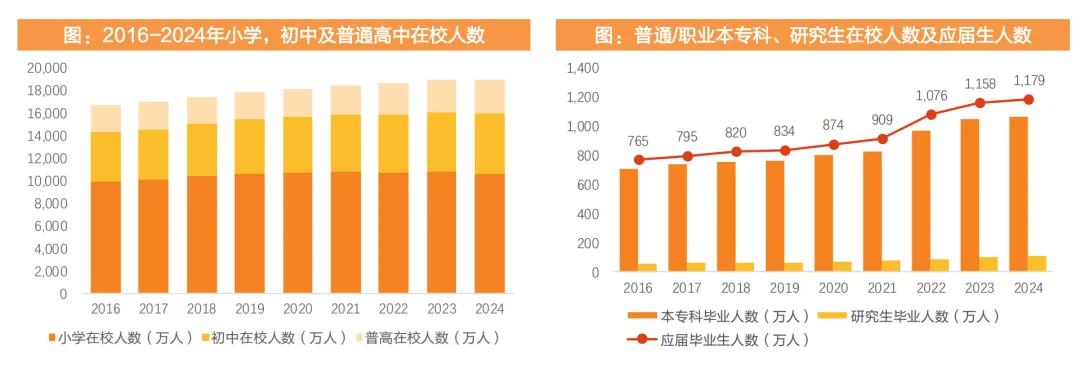 高中在校人数持续增长,教育行业仍处于红利期,就业市场压力增大。