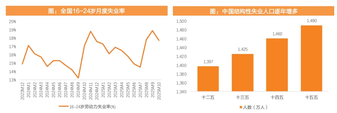 随着高等教育的快速发展,高校毕业生人数持续增长,2025年全国普通高校毕业生规模预计达1222万人,再加上往届未就业高校毕业生,以及其他各类新进入劳动力市场的群体,青年就业总量压力持续加大。