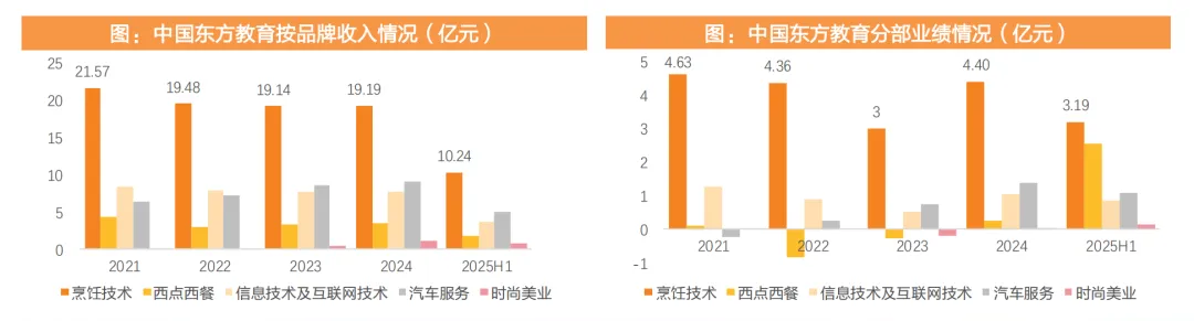 25H1 量价齐升 , 秋招稳步提速 。25H1 营 收 22 亿/yoy+10%,平均人数 15 万/yoy+5.5%%;新招生人数 8.35 万/yoy+7.1%:一年以上两年以下人数 1.07 万/yoy+85%,三年人数 2.34 万/yoy+4.5%,长训恢复增长。毛利改善,烹饪、西点业务改善为主贡献。经调净利 4.16 亿/yoy+49.6%:①学校产能爬坡及产品结构优化下毛利率 57%/yoy+4pct②规模效应下销售开支增长至491百万元/yoy+27 百万元,③经营优化下行政开支减少至236百万元/yoy-20 百万元。25H1 各分部品牌毛利率同比皆有所提升,烹饪、西点西餐毛利率分别为 60.5%/yoy+5.2pct、60.4%/yoy+6.6pct。