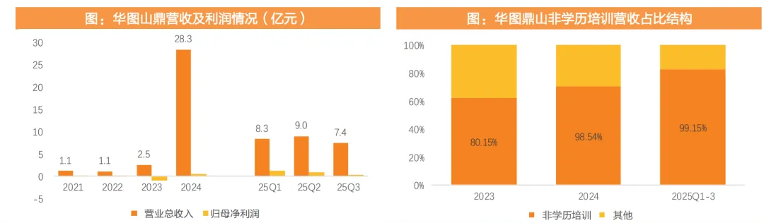 华图山鼎与粉笔达成战略合作,未来在 AI+公考培训的背景下,头部企业的市场份额与优势地位有望持续巩固。2025 年 12 月,华图山鼎与粉笔联合宣布签订《战略合作协议》。据华图董事长吴正杲表示,华图和粉笔作为行业里两家 AI 技术应用最领先的公司,联合 AI 开发可以降低各自研发成本,线上线下交付合作可以增加单位交付成本的利用效率,增加单班学员数量,从成本端优化两家公司财务报告;据粉笔总裁魏亮,此次合作本质是通过 AI 应用,优化人才培养与市场需求之间的资源配置效率,为不同背景用户提供全链条支持,提供多元化的高质量职业教育服务。