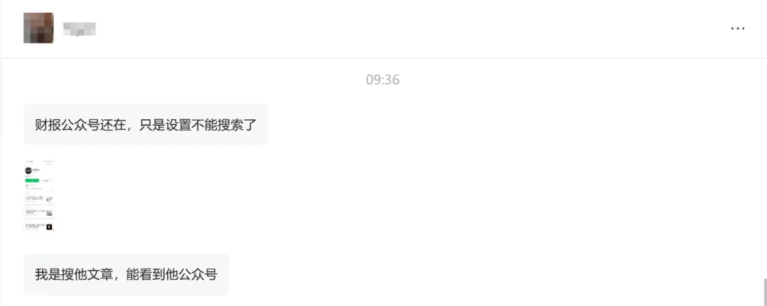 还有一个网友和我说,“财报真探”的公众号设置了不能搜索,实际上没有注销,搜索文章能够看到账号!