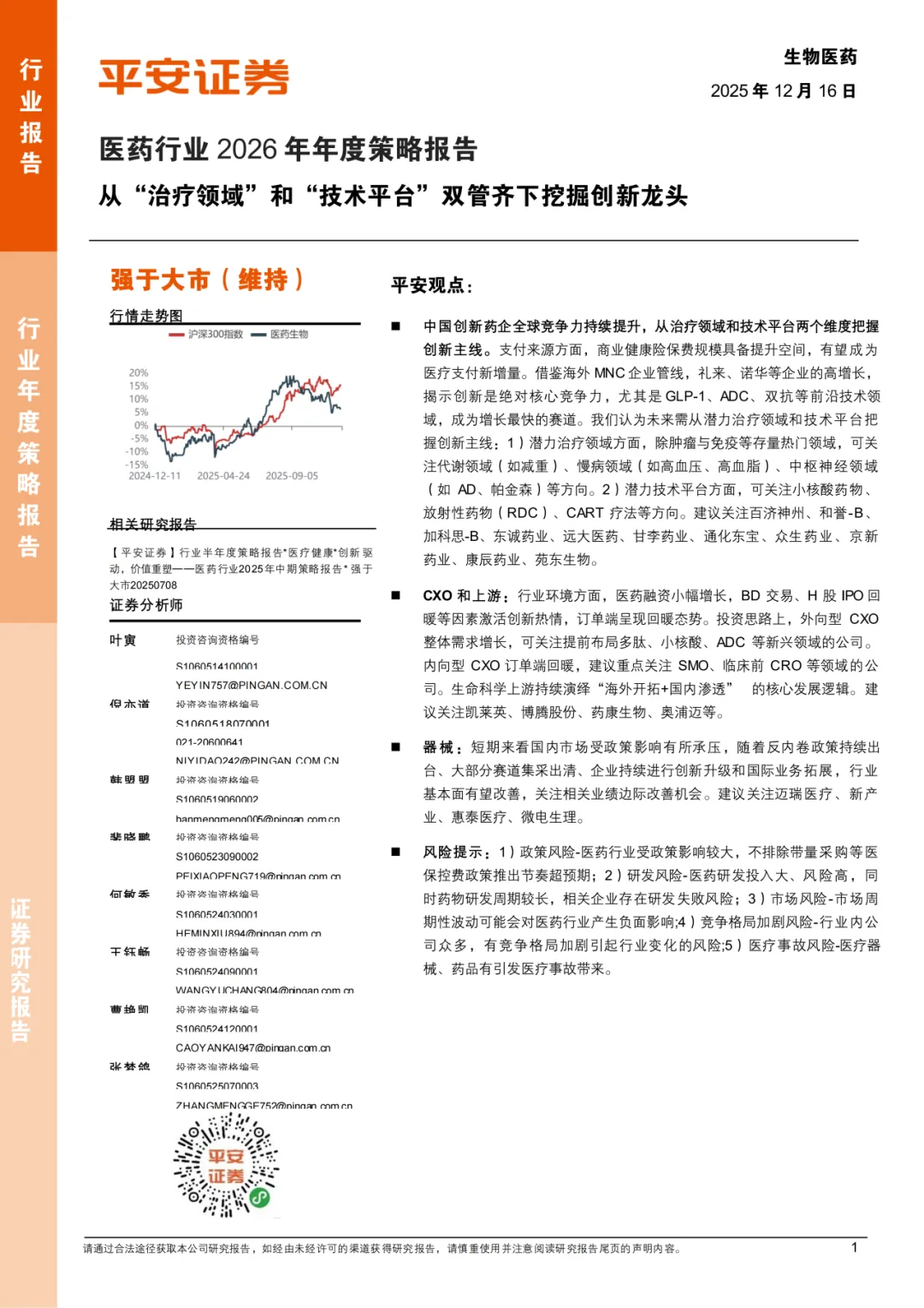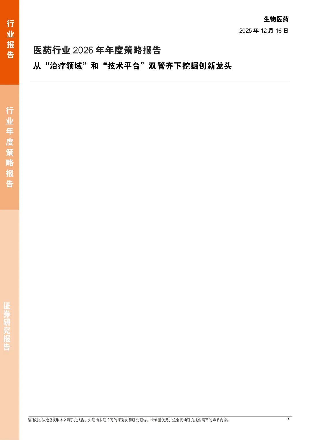 关注我们,后台回复“202602064”就可以获取《平安证券:医药行业2026年年度策略报告:从“治疗领域”和“技术平台”双管齐下挖掘创新龙头》(完整版) 的全文下载链接。