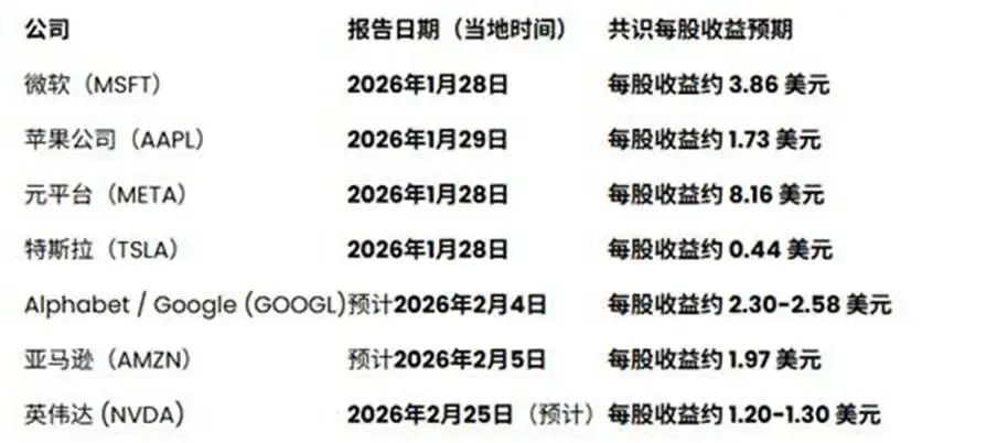 华尔街的目光已聚焦于这场被称为 “七巨头” 的科技公司财报季。微软、Meta、特斯拉的业绩已在1月底率先亮相,而苹果、英伟达、亚马逊及谷歌母公司Alphabet的财报则在随后的两周内密集公布。