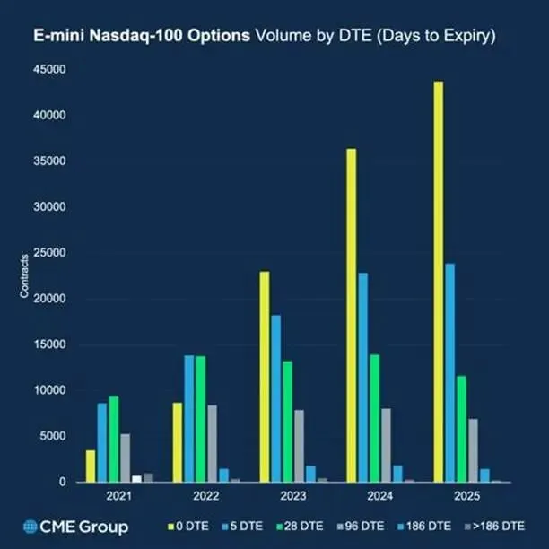 图3:2021-2025年E-迷你纳斯达克100指数期权DTE成交量趋势