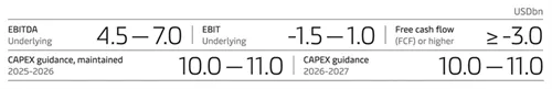 财务业绩指引基于2026年全球集装箱运输需求增长2-4%,且A.P. 穆勒 - 马士基的增速与市场保持一致这两个前提作出。这一范围的设定反映了航运业预期运力过剩,以及2026年红海逐步重新开放的不同情形。基础息税前利润指引还考虑了从2026年1月1日起将船舶预计使用寿命从20年延长至25年的影响,该变更预计将在2026年减少约7亿美元折旧。