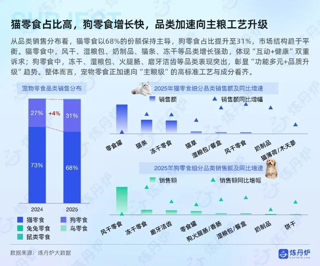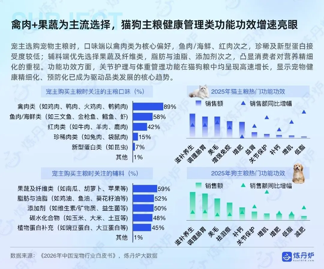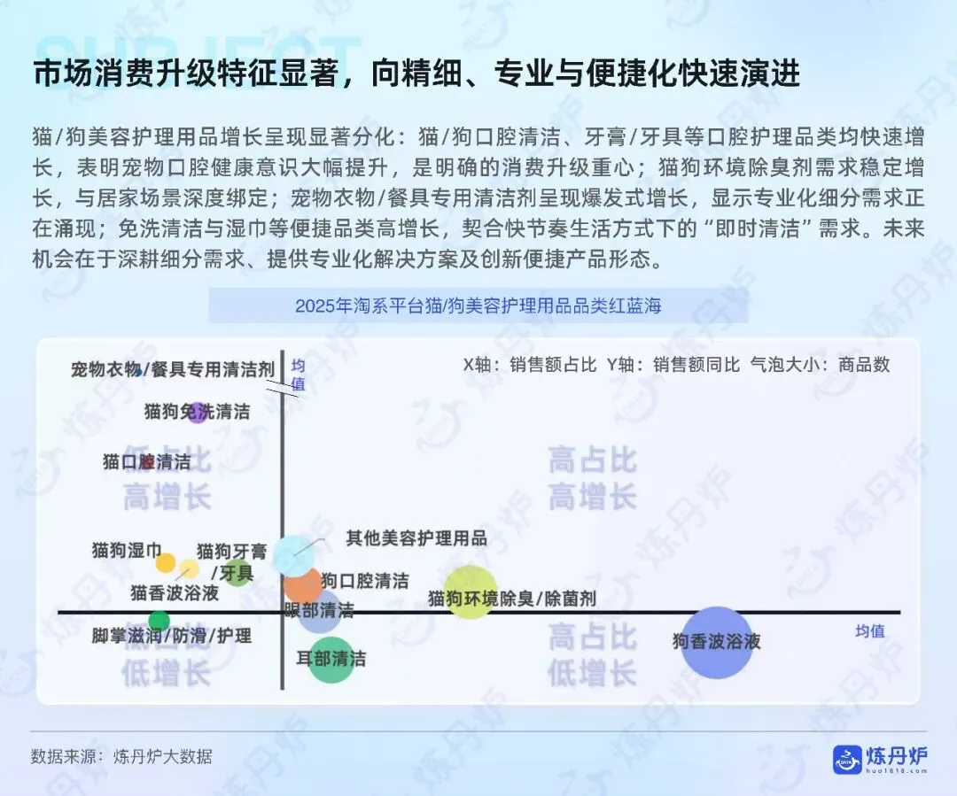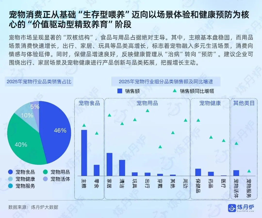 健康管理从治病转向预防,保健品适口性决定复购,关节肠胃细分爆发,驱虫药求广谱安全,老宠经济初现,殡葬延伸告别仪式与数字纪念。国产品牌主粮零食占主导,高端仍由外资领衔,渠道与细分创新是下一轮争夺焦点。