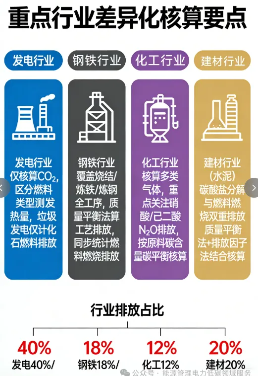 我国已形成以《工业企业温室气体排放核算和报告通则》为统领、46项行业国标为补充的核算体系,覆盖发电、钢铁、化工等重点领域,是碳市场运营与企业低碳转型的核心技术支撑。本文精简核心要点,聚焦实操关键。一、核心基础:原则、边界与范围(一)核心原则需恪守相关性、完整性、一致性、准确性、透明性五大原则,确保数据可比、真实、可追溯,变动核算方法或边界需专项披露。(二)核算边界以法人企业或独立核算单位为核心,覆盖其控制的全部生产及附属设施,特殊行业按需细化(如电网以省级为边界,民航含航班及地面设施),边界范围需在报告中明确说明。(三)核算范围涵盖二氧化碳、氧化亚氮、全氟化碳、六氟化硫等核心气体,聚焦化石燃料燃烧、工艺过程、间接排放(净购电/热力隐含排放)三大源头,行业按需取舍(如化工算氧化亚氮,铝冶炼算全氟化碳)。二、核心核算方法(适配不同场景)均以“排放量=活动数据×排放因子”为核心逻辑,按精准度与操作难度分类:1. 排放因子法:操作简单、应用最广,优先用企业实测活动数据搭配权威排放因子,适配中小企业及常规排放环节。2. 质量平衡法:基于物料守恒,精准度更高,适用于钢铁、化工、水泥等工艺复杂行业,需完整追踪含碳物料输入输出。3. 实测法:通过CEMS系统实时监测,直接采集烟气参数,适用于电厂、钢铁窑炉等高排放重点源,需定期校准设备。三、重点行业差异化核算要点1. 发电行业:仅核算二氧化碳,区分燃料类型精准测量发热量,生物质/垃圾发电仅统计化石燃料部分排放。2. 钢铁行业:覆盖烧结、炼铁、炼钢全工序,采用质量平衡法核算工艺排放,同步统计燃料燃烧排放。3. 化工行业:需核算多类气体,重点关注硝酸、己二酸生产的氧化亚氮排放,按原料碳含量精准开展碳平衡核算。4. 建材行业(水泥):核心为碳酸盐分解与燃料燃烧双重排放,采用质量平衡法与排放因子法结合核算。四、报告规范核心要求报告需涵盖企业基础信息、边界与范围说明、核算方法、活动数据及排放因子来源、排放量汇总等内容,原始台账留存至少5年,确保可核查、可追溯。同时需配合第三方核查,及时整改数据偏差,保障报告合规性。转自能源管理电力电力低碳领域服务,版权属于原作者,供学习交流。