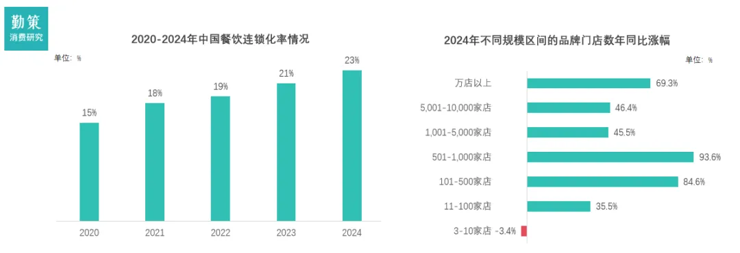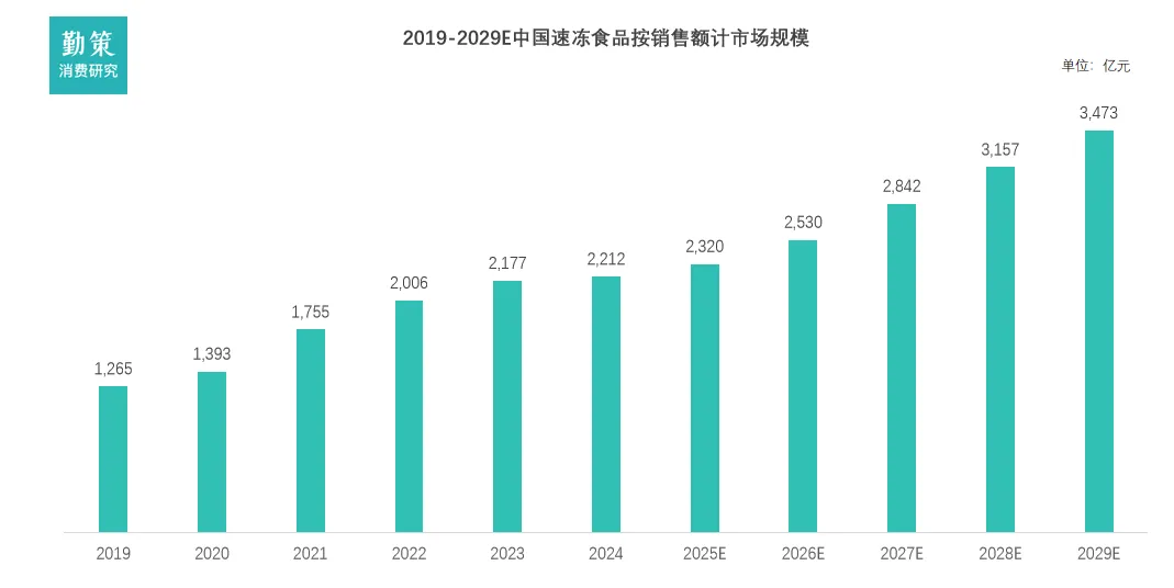 速冻食品是指以水产食材、肉类、谷物、粉末状配料、豆类等为主要原材料,配以水、油、调味品等辅料,经清洗、切配、调味、腌制、烹饪、速冻等工序制作而成,专为用餐场景设计的预包装食品。速冻工艺能够使食品的热中心温度迅速降至-18℃以下。速冻食品应在该温度下进行存储、运输和销售。中国的速冻食品主要包括速冻调制食品、速冻菜肴制品、速冻面米制品,以及其他如速冻汤羹制品等。推动中国速冻食品发展的核心在于巩固单人餐饮场景的优势,并拓展消费场景与产品价值。首先,速冻食品已在独居就餐需求中占据领先地位(占比50.2%),反映出其便捷性、易储存和口味稳定的特点高度匹配现代都市生活节奏。企业应继续围绕“一人食”场景深化产品创新,例如开发小包装、营养均衡的速冻套餐,并借助社交媒体与电商平台精准触达年轻单身群体,进一步强化“高效解决一餐”的消费心智。其次,速冻食品需突破“便捷替代品”的局限,向多元场景渗透。数据显示,消费者仍倾向于自己做饭(58.6%),表明对烹饪控制感和新鲜度的需求未减。因此,行业可推出半成品速冻食材(如切配好的蔬菜、调味肉类),降低烹饪门槛的同时保留“动手参与感”;同时联合餐饮品牌开发联名款,提升品质认知。此外,结合外卖与方便食品的高占比,开发适合办公室、户外等场景的便携速冻产品,将帮助行业从“居家储备”延伸至更广阔的即时消费市场。数据来源:企业招股书,弗若斯特沙利文,勤策消费研究火锅丸料已从传统火锅场景成功拓展至麻辣烫、关东煮、烧烤等多种餐饮形式,同时通过品质升级(如强调真材实料、优化爆汁口感)吸引了家庭及餐饮客户。反观速冻饺子,其消费场景受到现包饺子品牌(如袁记云饺)的强力冲击,且产品同质化问题突出,未能有效响应消费者对健康、新鲜食材的需求。此外,空气炸锅等小家电的普及进一步推动了丸类等适配性强的品类增长,而传统主食类速冻食品则面临增长压力。这种分化体现了速冻食品市场正从基础饱腹需求,转向追求便捷与品质并重的结构化升级。数据来源:企业招股书,弗若斯特沙利文,勤策消费研究受益于餐饮业务需求增长、个人客户渗透率提升带动家庭消费增加、产品质量及营养提升以及冷链基础设施完善等多个因素驱动,中国速冻食品行业将继续扩张。中国速冻食品行业于2024年至2029年的复合年增长率预计达9.4%,增长速度预期超过其他餐饮相关行业(如主食、零食、油、调料、液态奶),显示增长潜力强劲。按2024年收入计,速冻食品占包装食品市场20%以上份额。包装食品指预先定量包装及制作在特定材料和容器中的产品,主要包括即食食品、即热食品、即烹食品及即配食品。二、中国速冻食品产业链:连锁餐饮标准化提速驱动速冻食品B端市场扩容中国速冻食品行业上游为米面、肉禽、果蔬等农产品原料及包装、冷链设备供应商,中游是集研发、生产、加工于一体的速冻食品制造企业,下游则通过商超、电商、餐饮渠道触达家庭与 B 端消费群体,全产业链依托冷链物流实现原料供应、生产加工到终端配送的高效衔接。1. 百店规模品牌增长最快,行业进入连锁发展新阶段美团数据显示,2024年中国餐饮连锁化率继续提升,从2021年的19%升至2024年的23%,品牌连锁化发展稳步进行。从2024年不同规模区间的品牌门店数年同比涨幅来看,501-1000家规模区间的品牌门店数增长最快,涨幅达93.6% , 其次是101-500家的规模区间(64.6%)和万店以上规模区间(69.3%)。中国连锁餐饮店数的增长与门店总数的扩张是推动速冻食品B端需求的核心驱动因素。根据国家统计局及行业报告数据,2023年中国连锁餐饮门店数达970家,连锁总数达64,693家。这一趋势加速了餐饮标准化进程,连锁店为确保菜品一致性、降低劳动力成本和提升运营效率,转向大规模采购速冻食品,如火锅料和调制食品,用于中央厨房或门店快速加工,推动B端需求占比超50%。门店总数的扩张进一步放大需求放大效应。2024-2025年受下沉市场渗透和加盟模式驱动,预计净增门店超10%,特别是在三四线城市。更多门店意味着更大原料消耗规模,速冻食品通过冷链物流完善和预制化属性,帮助连锁餐饮应对季节波动、外卖高峰和食品安全要求,实现成本节约(单店采购成本降10-20%)。例如,安井食品等供应商受益于此,B端收入占比提升,预计2025-2028年速冻食品B端市场CAGR超8%,但需警惕竞争加剧和健康趋势对高脂品类的冲击。三、中国速冻食品竞争格局:“一超多强”,行业整合预期加速中国速冻食品行业已形成“一超多强”的竞争格局,并正处于深刻的转型期。安井食品凭借超过百亿元的营收规模和约6.6%的市场占有率稳居行业龙头,其市场份额约为第二名的两倍,呈现出“一超”格局。三全食品和思念食品构成第二梯队。当前,行业竞争的核心正从过去依赖渠道扩张的“跑马圈地”,转向以“效率驱动”和“产品立命”为特征的新阶段,最激烈的价格战在2025年已出现企稳迹象。同时,市场增长动力显著分化,面向餐饮企业(B端)的供应链市场因连锁化率提升而需求旺盛,增速优于面临压力的传统零售渠道(C端),而速冻菜肴制品(预制菜) 已成为各家押注的核心增长引擎。1. 企业案例:安井食品 预制菜崛起为新引擎,传统品类增长承压