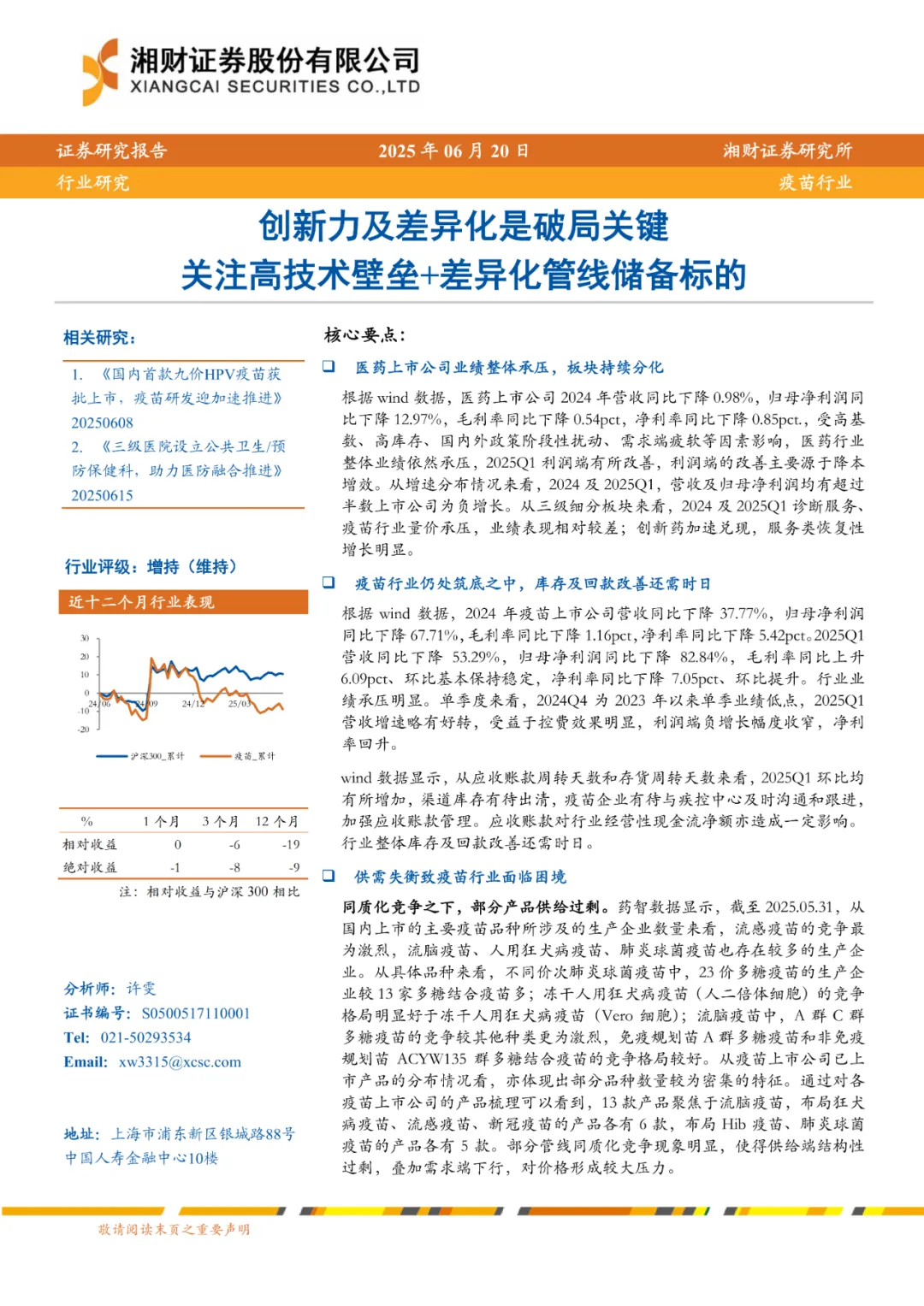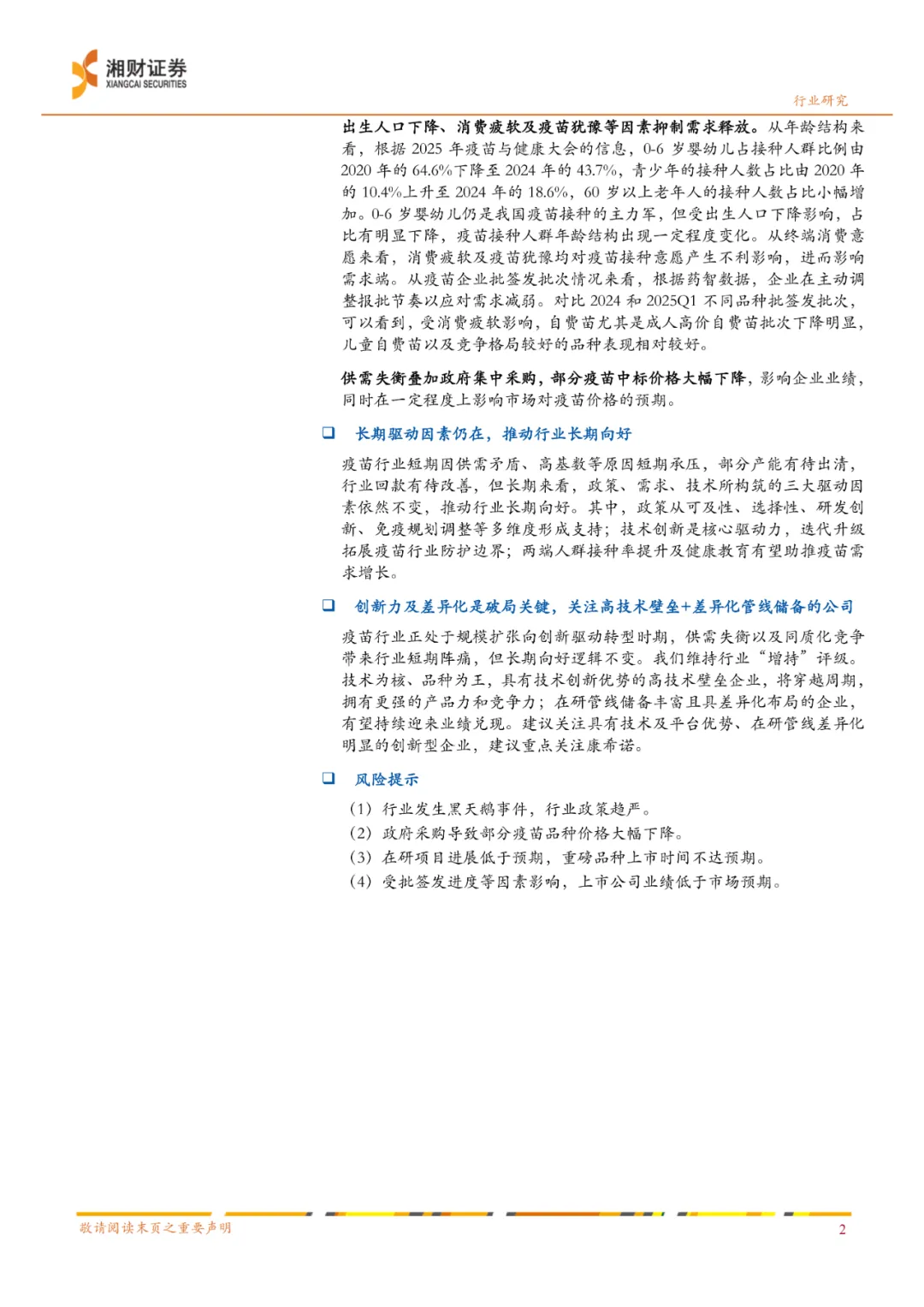 下载报告:疫苗行业:创新力及差异化是破局关键,关注高技术壁垒+差异化管线储备标的