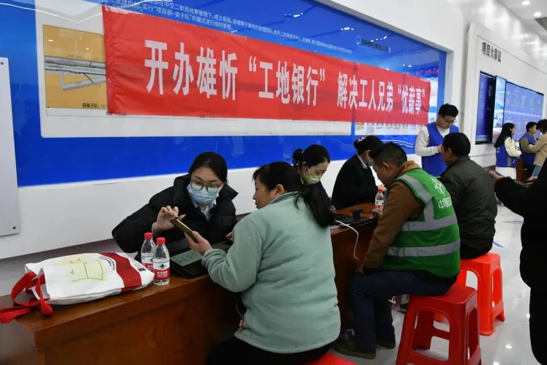 在工人最关心的“薪事”上,项目部联合中国银行开设“工地银行”,开通办卡“绿色通道”,并设立农民工工资维权中心,安排专职劳资员值班,定期组织青年志愿者深入一线发放《产业工人维权指引》,手把手教工人扫码反映问题,畅通维权渠道。