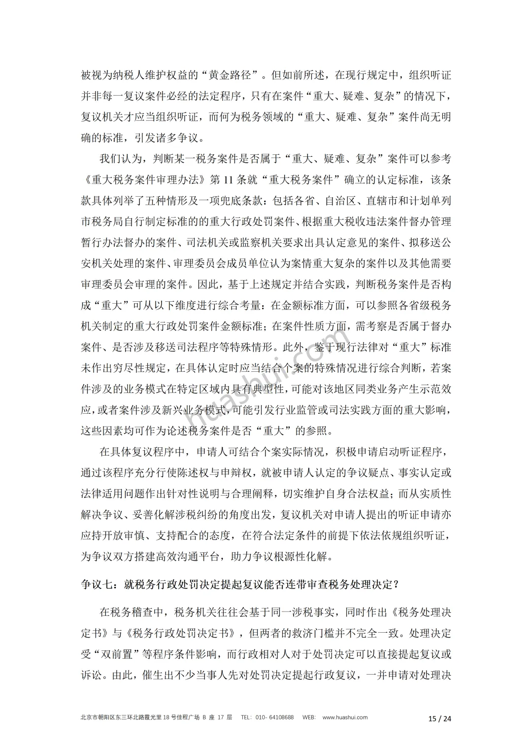 华税长期以来专注于涉税争议解决服务,拥有丰富的税务行政复议案件代理经验。华税团队基于对行政复议相关规定的理解、争议问题的深入研究以及案件代理经验撰写本报告,系统解析税务行政复议程序,聚焦实务中的主要争议问题,并结合案例进行探析,以期为税务争议的解决提供有益参考。