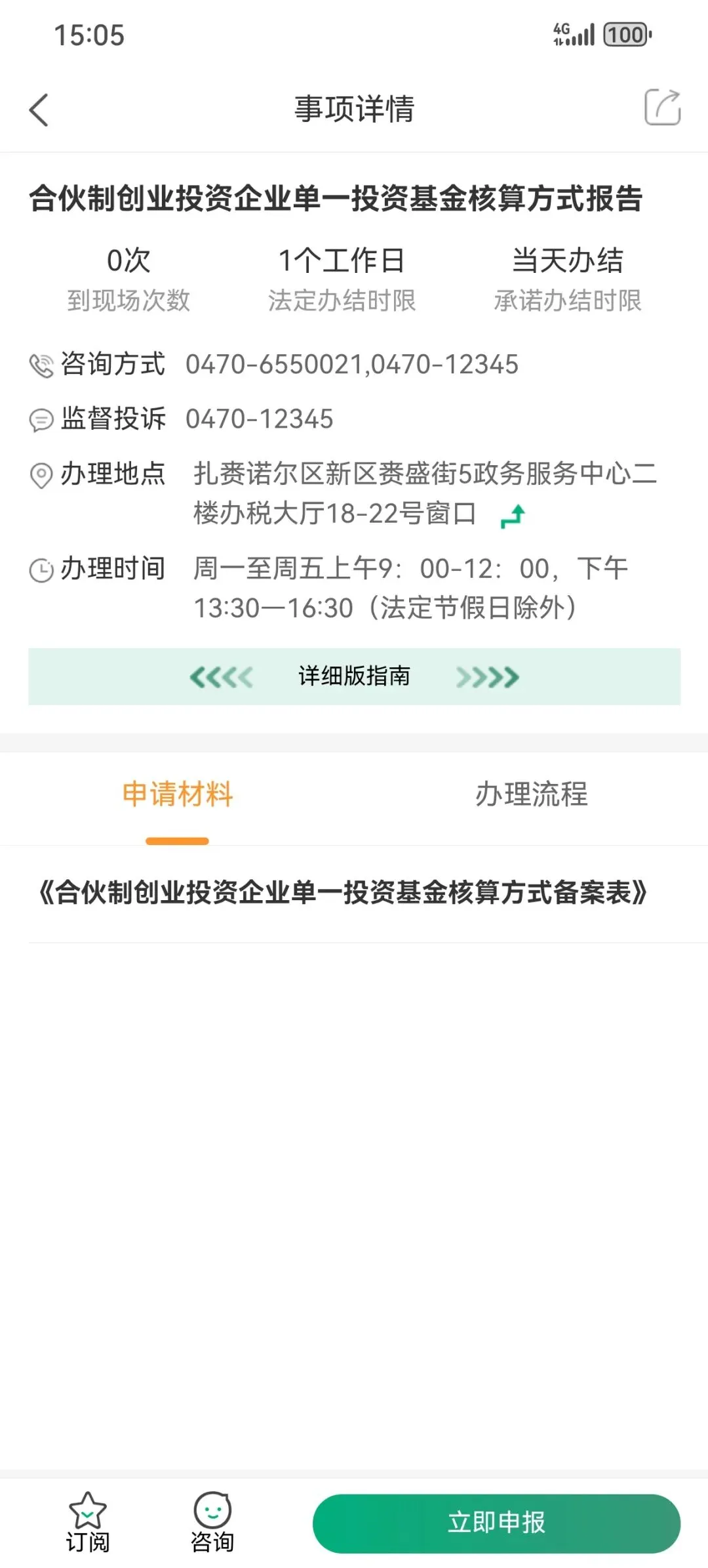 05点击“立即申报”,进入事项办理页面,按照要求逐步填写信息,提交申请