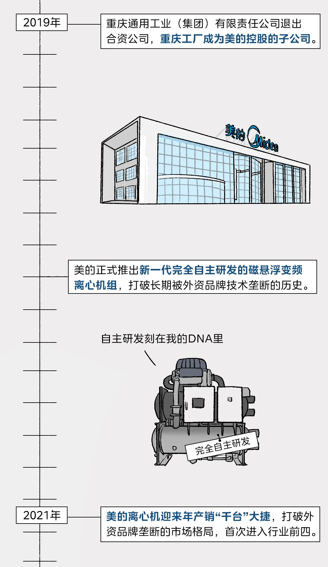 我们再对比下2024年前四名数据,有明显的变化:美的从第2名升至第1名,海尔由4名开外跻身至第4名。可以看到以美的、海尔为代表的国产离心机,正推动离心机国产化的一场革命。美的离心机的20年是怎么发展的呢?