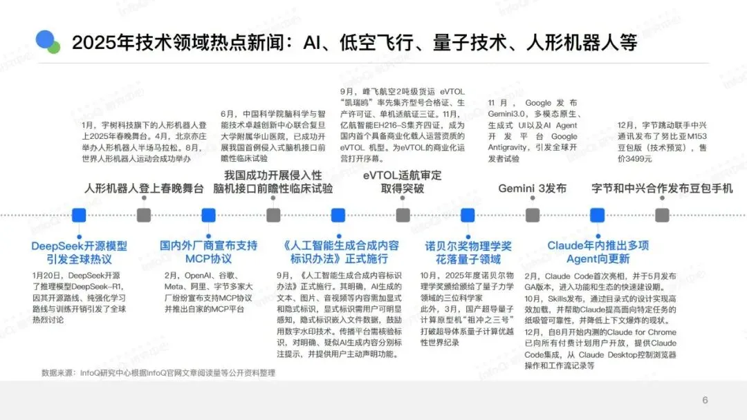 本报告系统回顾2025年中国软件技术发展态势,展望2026年核心趋势。2025年,AI持续引领行业变革,推理模型、多模态技术迭代加速,人形机器人、脑机接口、eVTOL等领域实现关键突破,量子技术、星地互联网多点开花;投融资市场中,人工智能领域吸金占比达90.0%,人形机器人成为热门赛道。2026年,技术将呈现架构分化、原生多模态普及、推理基础设施升级等趋势,AI与量子、低空飞行等前沿技术深度交融,推动科研范式与产业生态重构,为数字经济发展注入新动能。