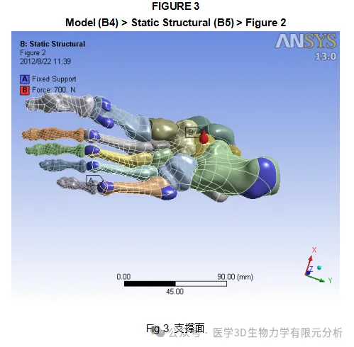 施加的作用力为F=***N。作用在胫骨上。如图Fig 2所示。